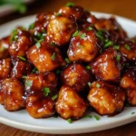 Delicious bite-sized chicken pieces coated in a sweet and tangy honey BBQ sauce, perfect for any occasion!