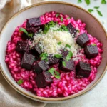 A vibrant and creamy Beet Risotto infused with the earthy sweetness of roasted beets and rich Parmesan, perfect for any occasion.