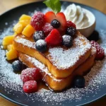 6. Serve warm: Serve your heavenly French toast hot, dusted generously with powdered sugar. Top with fresh berries, a dollop of whipped cream, and an indulgent drizzle of maple syrup.