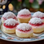 8. Dip each cake in strawberry jelly, then roll in shredded coconut.