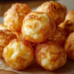Coating Each Puff: Roll each puff in the flour to coat lightly, then dip it into the egg wash, ensuring an even coating. Finally, roll it in the breadcrumb mixture until it’s nicely covered. Repeat this for all puffs.