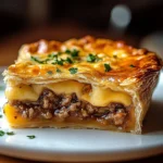 A delightful comfort food that combines classic cheeseburger flavors in an easy-to-make pie, featuring ground beef, onions, and cheddar cheese nestled in a flaky crust.