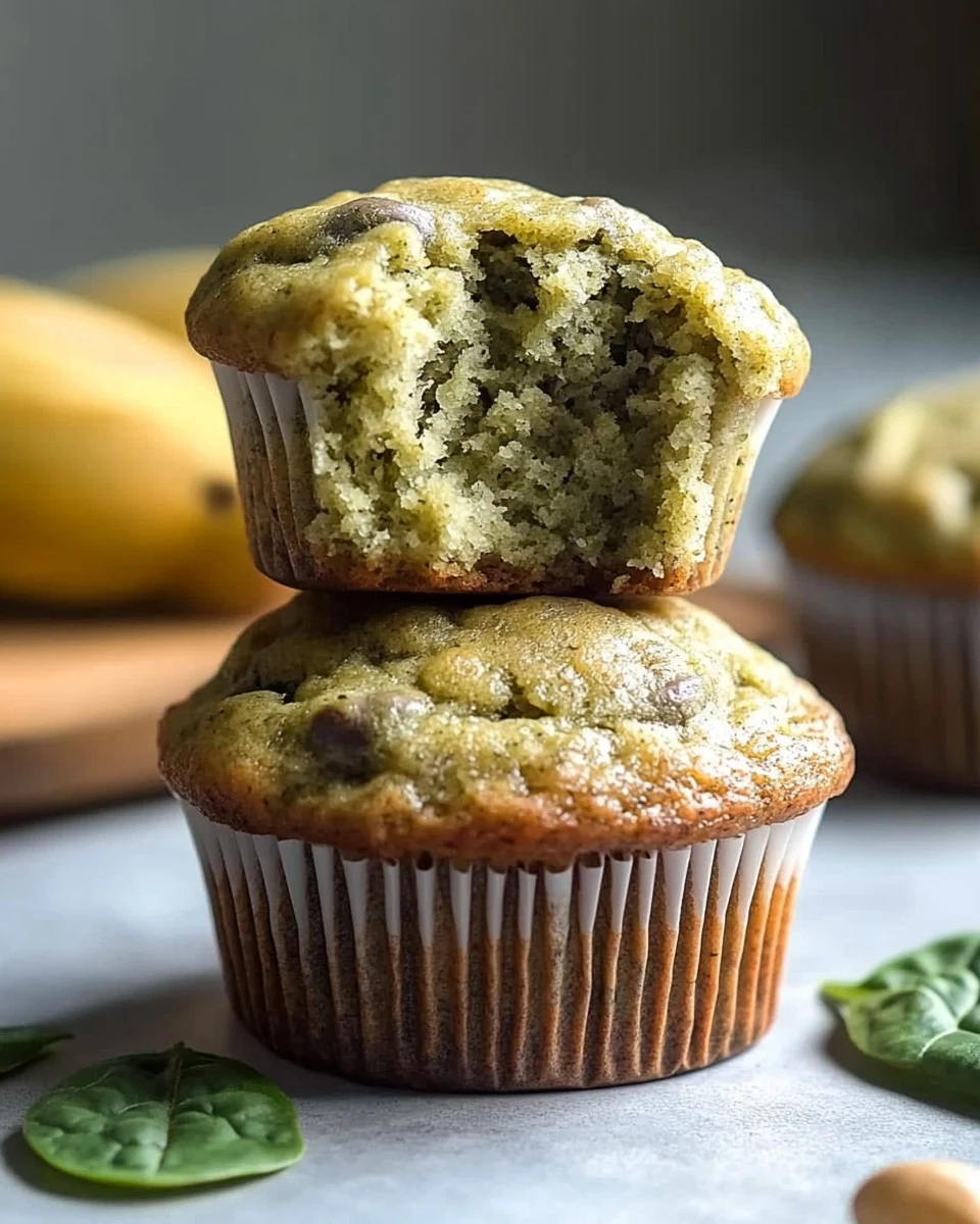 Imagine sinking your teeth into a fluffy, moist muffin quietly infused with the goodness of spinach while being kissed by the natural sweetness of ripe bananas.
